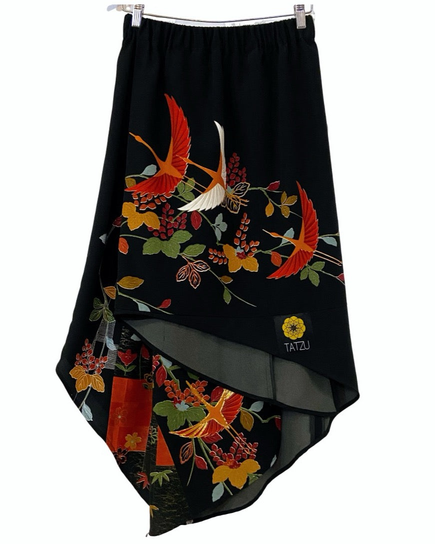 TATZU 黒留袖リメイク アシンメトリー ドレープレイヤード スカート - Edition Ⅱ / Remade Kurotomesode Asymmetry Drape Layered Skirt