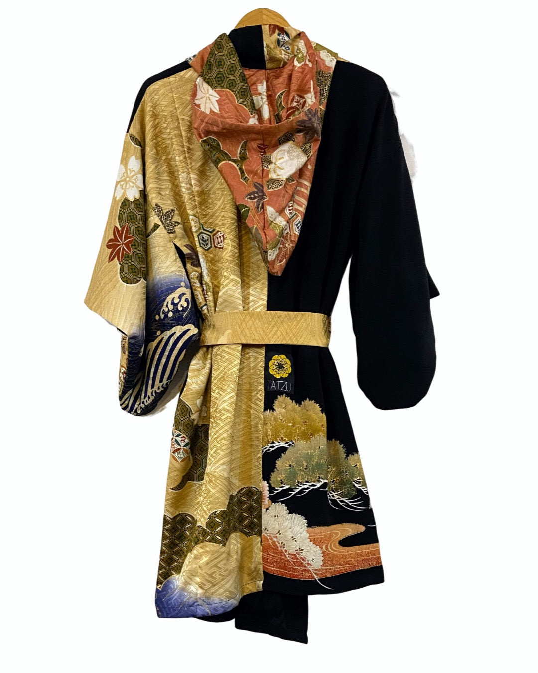 TATZU 黒留袖リメイク スタンドカラー アシンメトリー ガウンパーカー / Remade Kurotomesode Gown Hoodie