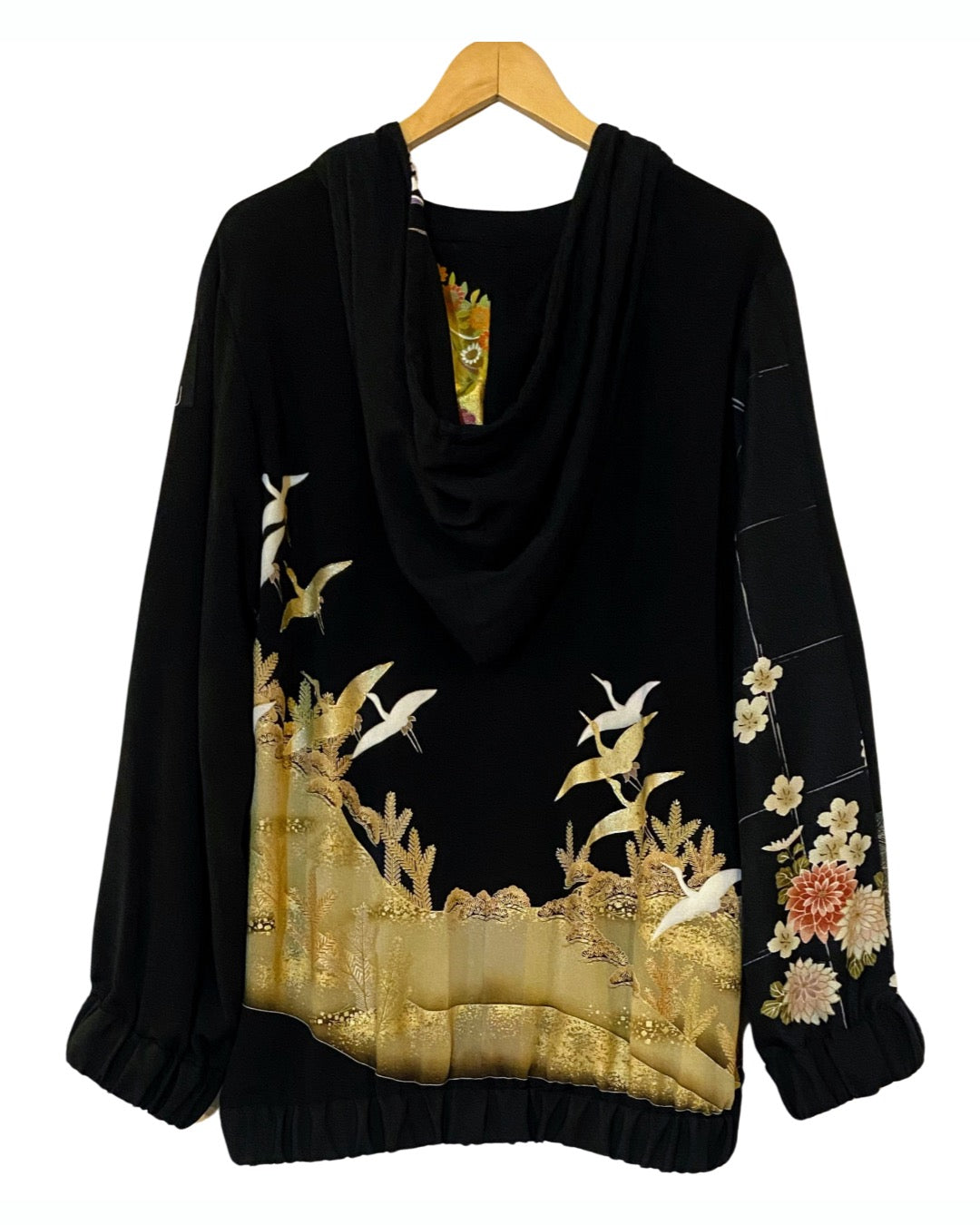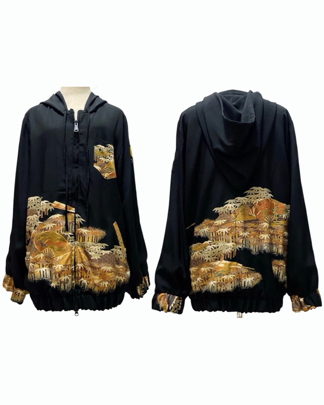 TATZU 黒留袖リメイク ジップパーカー / Remade Kurotomesode Zipper Hoodie | Made to Order